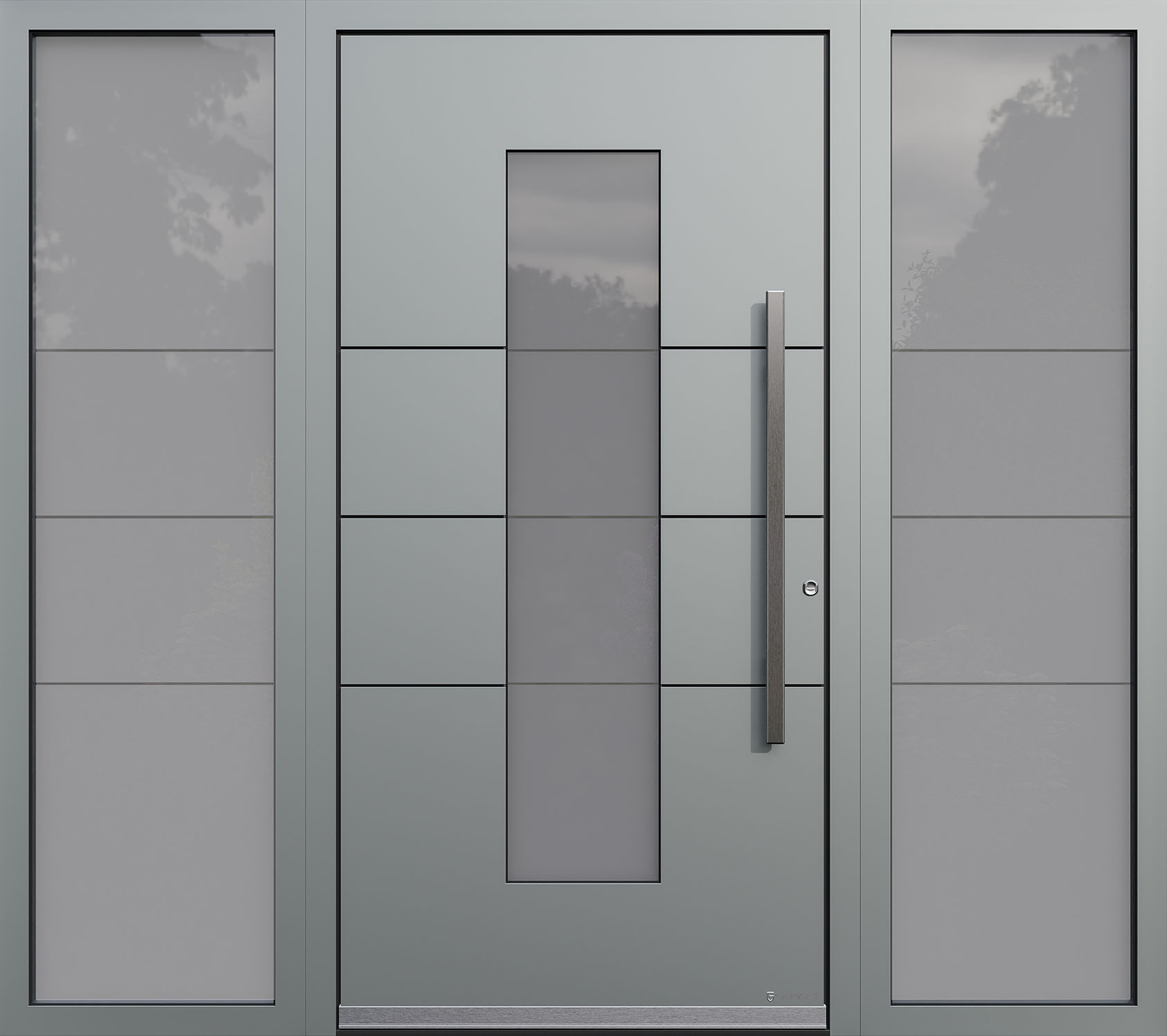 Verglasung: Satinato mit transparenten Glasstreifen,